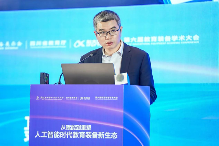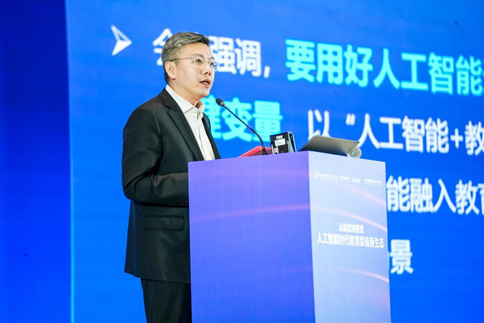 科大訊飛股份有限公司董事、高級副總裁聶小林在致辭中闡述了科技企業利用AI重構教育裝備生態的戰略路徑。他認為,當前AI智能體技術快速迭代,構建了新的連接模式,推動教育裝備由“工具連接”走向“智能連接”,助力智能化、個性化教育裝備發展。