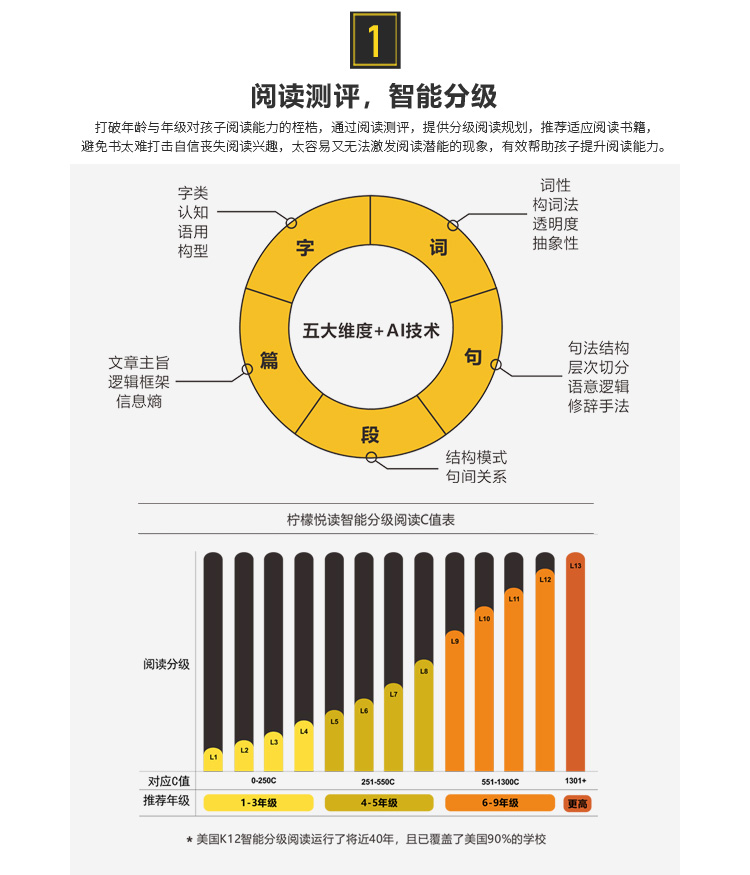 6.智能分級閱讀測評/閱讀訓練模塊:按年級和短文類型分類評測多篇短文;提供3~4道挑戰題,幫助測試文章閱讀效果