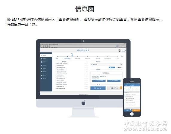 產品詳細介紹微恒MEM教學軟件是我們(成都微恒網絡技術有限公司)自主研發的“教-學-管”一體化教育教學工具,它包括了網絡授課教學,移動教務管理,招生CRM管理等功能,能有效將教職工零碎時間合理利用,使其在不知不覺中輕松完成日常繁雜管理,提高教育機構教學質量,實現高效的教育、學習、管理一體化的高效教育模式。