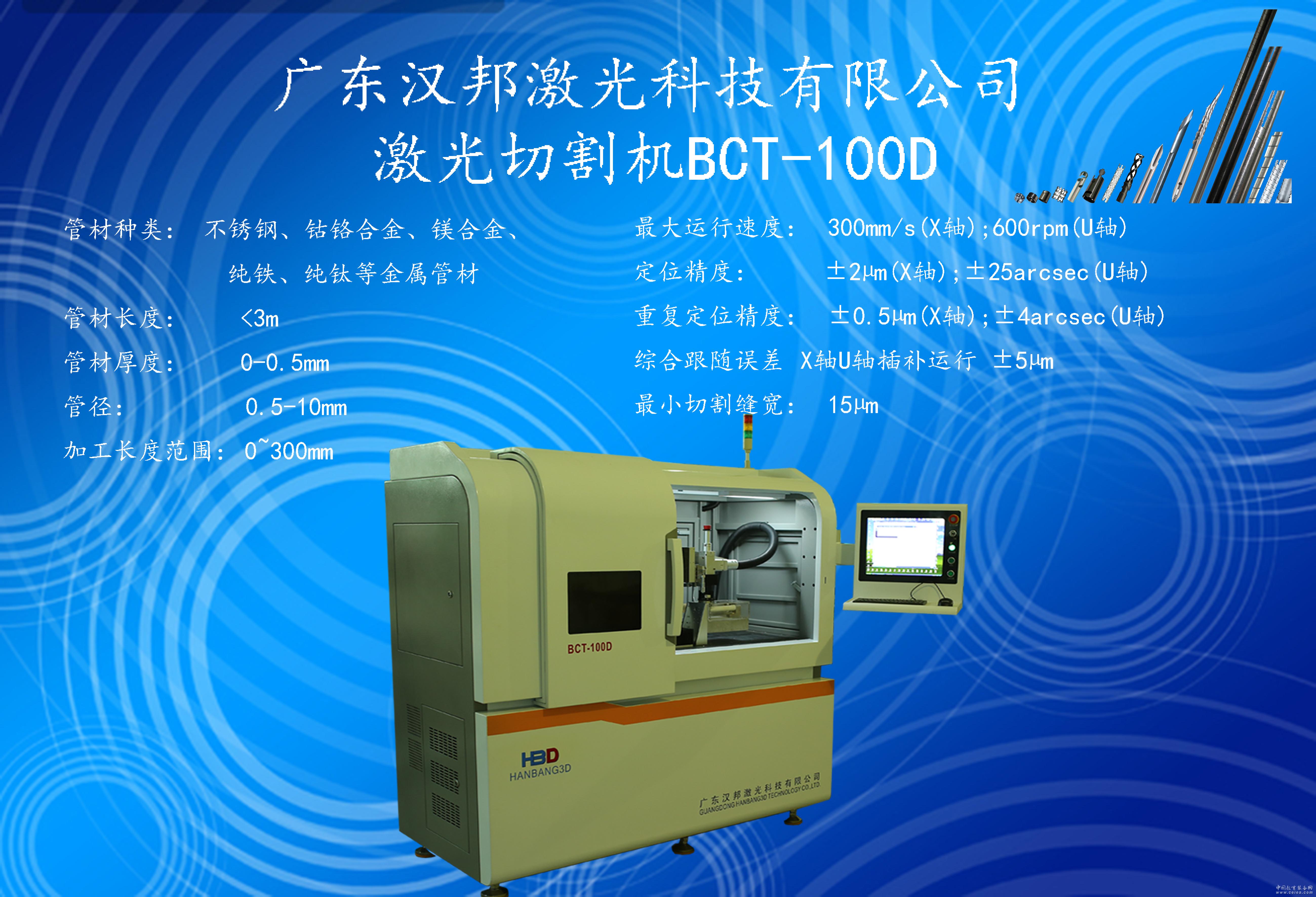 產品詳細介紹 廣東漢邦激光科技有限公司 我司的激光切割設備,全部采用進口光纖激光器,配套進口工作臺系統,針對各類血管支架等各種醫療管類植入體,以及鼻鉆、骨鉆等微型管類零件、內窺鏡連接體、各種異形針管、工業精密管零件、各類金屬微管等,可以實現多種工藝的精密切割,滿足客戶的種種需求。 電話:13242224721 QQ:956018187 許均列