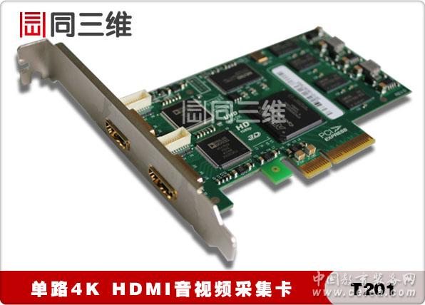 產品詳細介紹 HDMI采集卡T201 是北京同舟視達科技有限公司推出的最新的 4K HDMI采集卡,可采集 1 路 4Kx2KHDMI 超高清視頻信號(4096×2160@30fps或3840×2160@30fps)。同三維T201高清4KHDMI采集卡采用高速 PCI-Express×4 接口,達到 600-800MB/s 傳輸帶寬,并采用高速大容量圖像緩存技術,輕松達到更高的傳輸速率和質量;色彩空間轉換、畫面反轉、縮放和去隔行等圖像處理在 FPGA 內完成,極大地減少了 CPU 的負擔,高效率 DMA 傳輸方式進一步解放了 CPU 的能力,從而讓 CPU 專注于用戶指定的工作。