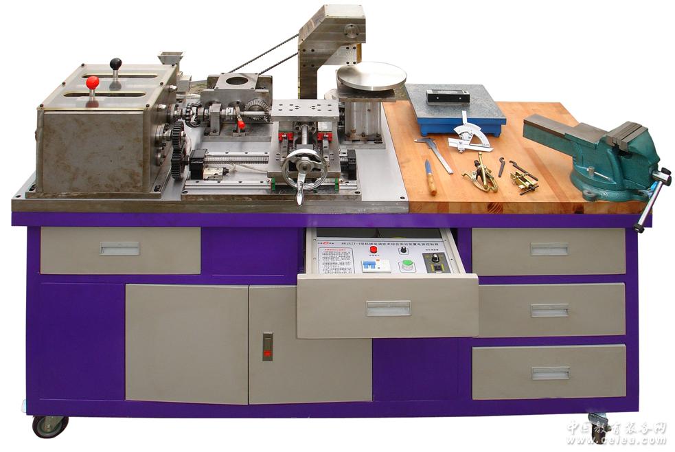 1.實訓臺:采用鐵質雙層亞光密紋噴塑結構,包括操作區域和機械裝調區域兩部分。操作區域主要由實木臺面、橡膠墊等組成,用于鉗工加工和裝配各種機械零部件(箱體部分采用鋁合金材料);機械裝調區域采用鑄件操作臺面,學生可在上面安裝和調整各種機械機構。