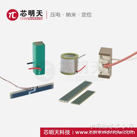 復合結構壓電陶瓷 通過對壓電元件進行疊加、粘接、電極處理等方式制成的壓電陶瓷產品,我們稱之為復合結構壓電陶瓷,芯明天復合結構的壓電陶瓷主要包括高壓壓電陶瓷、壓電纖維片、壓電雙晶片。 高壓壓電陶瓷是通過對單晶體壓電陶瓷片與金屬電極層疊加再進行電極連接處理制成的。高壓陶瓷的驅動電壓為500V 或1000V,高壓陶瓷形狀柱形,環形。產品主要優點為大出力最大可達50000N,可以高動態操作。 壓電纖維片,是通過很細的壓電纖維棒排列、拼接、極化、覆膜而制成厚度為0.3mm左右的薄片,可以橫向伸縮或斜向伸縮,與其他金屬板粘接可以帶動金屬片彎曲。可以作為致動器或傳感器。廣泛用于減震抑振或形變測量等。 三維壓電陶瓷是將可以XY運動的壓電剪切片與軸向運動壓電陶瓷片疊加形成多維壓電陶瓷結構。 壓電雙晶片是通過單晶體陶瓷片與金屬結構結合,實現上下擺動的壓電陶瓷片。 單晶體壓電陶瓷: 單晶體壓電陶瓷為共燒壓電陶瓷以及復合結構壓電陶瓷的基礎元件,是將壓電陶瓷粉末經過配料,預燒,混合粉碎,成型排塑,燒結,極化等系列工序而制成各種形狀尺寸的壓電元件。 單晶體壓電陶瓷的驅動電壓受陶瓷片的厚度所影響,通常極化方向厚度1mm的壓電陶瓷,最大驅動電壓為1000V