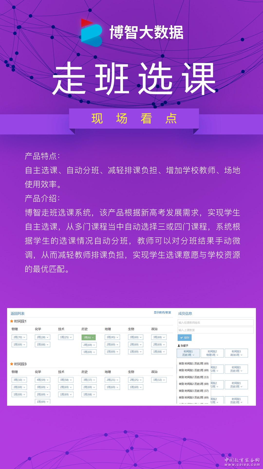 產品詳細介紹博智走班選課系統,該產品根據新高考發展需求,實現學生自主選課,從多門課程當中自動選擇三或四門課程,系統根據學生的選課情況自動分班,教師可以對分班結果手動微調,從而減輕教師排課負擔,實現學生選課意愿與學校資源的最優匹配。