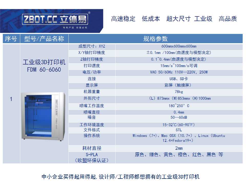 立體易FDM-60-6060超大尺寸工業級3D打印機