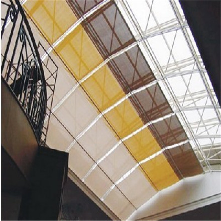 產(chǎn)品詳細(xì)介紹FCS折疊式天棚簾簡(jiǎn)介: FCS電動(dòng)天棚簾分為單電機(jī)折疊式天棚簾和雙電機(jī)折疊式天棚簾,其系統(tǒng)為水平或傾斜天窗遮陽(yáng)而設(shè)計(jì),用于垂直、水平、 FCS折疊式天棚簾工作方式: 系統(tǒng)利用管狀電機(jī)旋轉(zhuǎn)帶動(dòng)鋁合金卷管轉(zhuǎn)動(dòng),由于卷繩器直接固定在鋁合金卷管上,卷繩器被動(dòng)轉(zhuǎn)動(dòng)并卷繞已經(jīng)纏繞在卷繩器上的卷拉鋼絲,卷拉鋼絲的兩端都固定在同一卷繩器上,另一端通過(guò)一個(gè)定滑輪導(dǎo)向(定滑輪底部有伸縮彈簧,起到繃緊鋼絲的作用),形成循環(huán)形式,運(yùn)行時(shí)鋼絲在卷繩器上做循環(huán)運(yùn)動(dòng),一頭鋼絲放出,一頭鋼絲收緊。面料上方固定導(dǎo)向鋼絲,寬度2米內(nèi),通常使用2根導(dǎo)向鋼絲,寬度超出2米寬度則需使用3根導(dǎo)向鋼絲,導(dǎo)向鋼絲始終處于緊繃狀態(tài),遮陽(yáng)面料通過(guò)面料支撐桿懸掛在導(dǎo)向鋼絲上,卷拉鋼絲與前端的面料支撐桿固定連接,從而帶動(dòng)整套遮陽(yáng)系統(tǒng)運(yùn)行。該系統(tǒng)可使用開(kāi)關(guān)、遙控或智能控制方式。 FCS折疊式天棚簾產(chǎn)品特點(diǎn): FCS天棚簾采用鋼絲繩傳動(dòng),噪音低。選擇性的面料較多。天棚簾完全展開(kāi)后,面料呈現(xiàn)均勻的波浪效果,更美觀,性價(jià)比也高,可用于大面積的采光遮頂。 應(yīng)用場(chǎng)所:適用于公共場(chǎng)所大型玻璃采光頂?shù)恼陉?yáng),如:商務(wù)中心,展覽館,商場(chǎng),體育館等 |