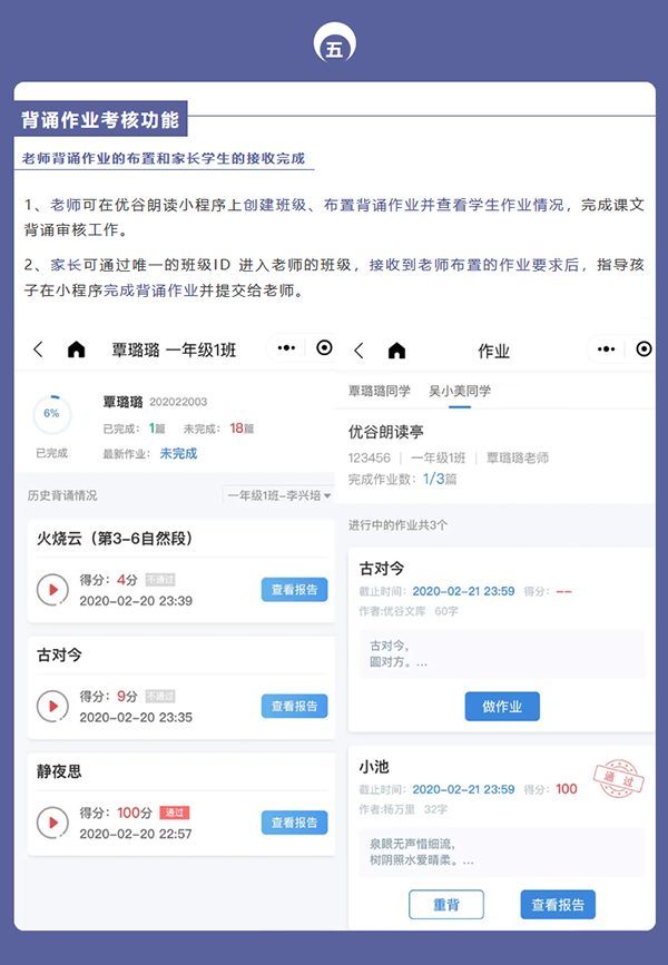 目前,優(yōu)谷朗讀小程序已具備在線錄制朗讀音頻/視頻作品、留聲卡作品展示、名家示范誦讀、線上活動舉辦和線下小舞臺、背誦作業(yè)考核、機(jī)構(gòu)獨(dú)立小程序等六大功能,為用戶提供了更加專業(yè)用心的服務(wù)。
