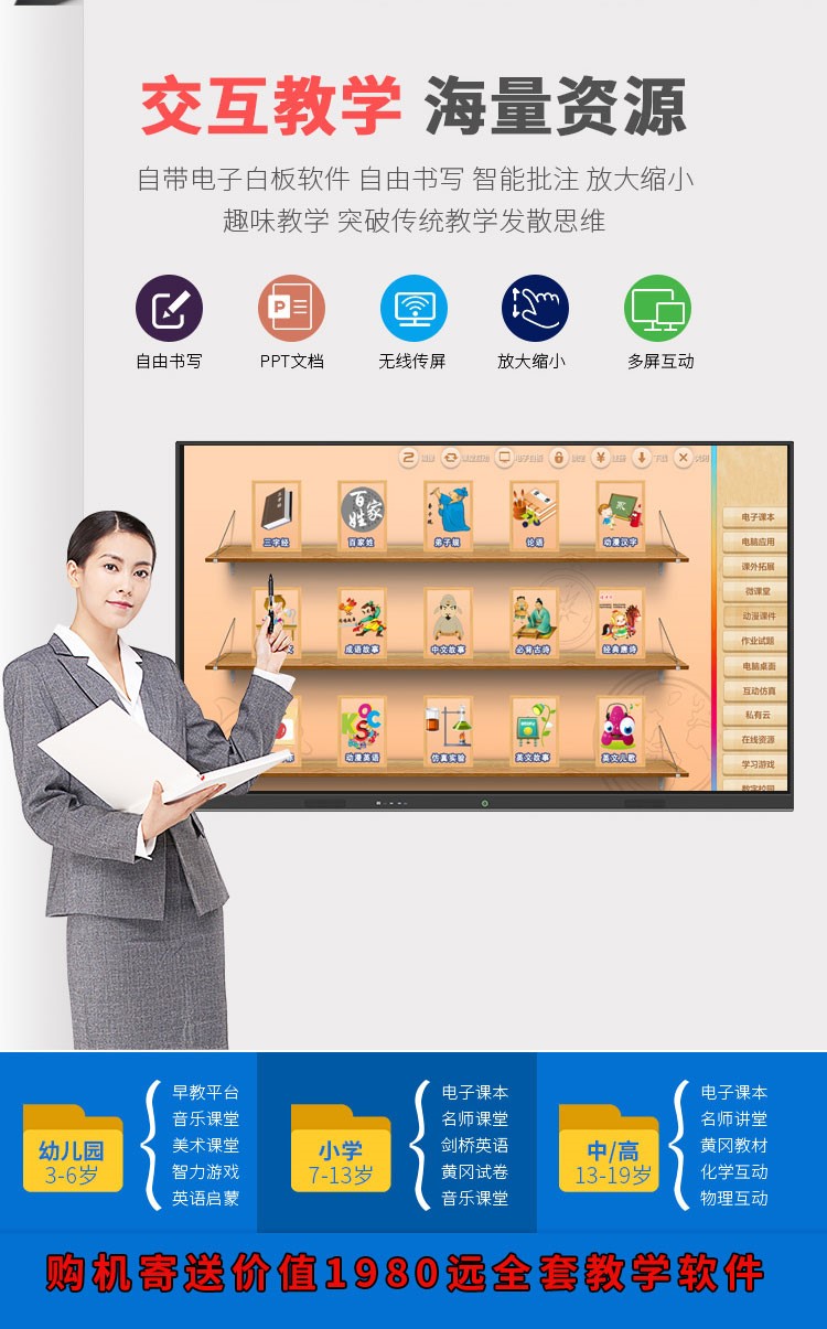 4、教學應用,興趣教學。逼真貼近教學應用,電子教學上課更輕松;