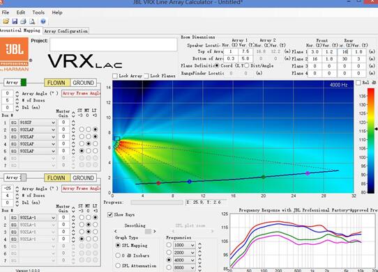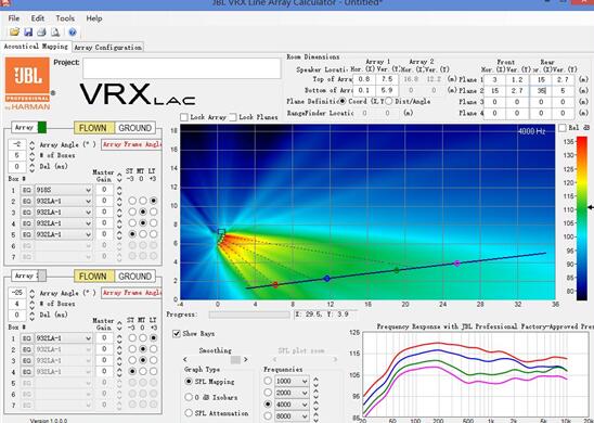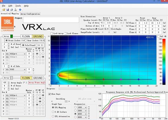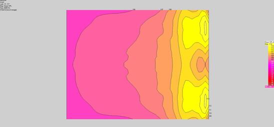 注:為了達(dá)到一個(gè)平坦的覆蓋范圍,采用+3dB,0dB,-3dB,頂部到底部差-6dB的連續(xù)的陣列補(bǔ)償較為恰當(dāng)。這種連續(xù)的補(bǔ)償能通過使用功放一個(gè)通道驅(qū)動頂部兩個(gè)揚(yáng)聲器,另一個(gè)通道驅(qū)動底部兩個(gè)揚(yáng)聲器,并且對底部那對揚(yáng)聲器做6dB的衰減,同時(shí)底部的揚(yáng)聲器的ACS開關(guān)設(shè)在+3dB和0dB上的方法來實(shí)現(xiàn)。