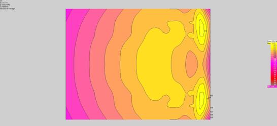 600m2宴會廳俯視圖(兩個(gè)3 x VRX932LA-1系統(tǒng)):