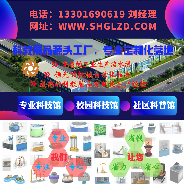 產品詳細介紹 上海慣量自動化有限公司是一家依托于完善的工業生產流水線及成熟的機械自動化技術水平、專注于科教展品定制化設計生產的專業化設備制作公司,為科普產品工廠聯盟的理事單位,主要專業生產市縣級科技館展品和校園、社區科技館科普互動設備。產品質量過硬,多次受到有關領導、專家、教授的好評與贊賞,一次性通過驗收。產品經過不斷地創新、改進完善,它將以更優良的性能、優異的品質、高標準的配置及操作簡單、功能齊全、優惠的價格和良好的售后服務質量奉獻給廣大客戶。 公司占地面積數千平,擁有剪板機、切割機、激光雕刻機、折彎機、刨床、沖床、鉆銑床、數控車床、木工推臺鋸、木工雕刻機、打包設備等,形成完善的工業化生產流水線;公司擁有噴漆噴塑車間及設備,通過國家 部門認可的完整排放標準與手續,可以本公司全程完成生產制作,提高生產效率,保證訂單展品的及時發貨交付。