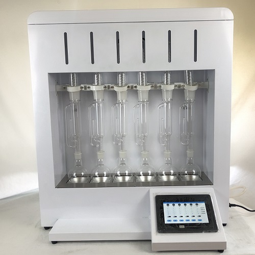 主要特點(diǎn): 1、加熱抽提,溶劑回收和冷卻三大部分組成; 2、索氏提取器的操作時(shí)可以根據(jù)試劑沸點(diǎn)和環(huán)境溫度不同而調(diào)節(jié)加熱溫度; 3、試樣在抽提過程反復(fù)浸泡及抽提,從而達(dá)到快速提取目的; 4、可自動(dòng)回收溶劑,大大方便了用戶的使用,并節(jié)約了很多時(shí)間; 5、索氏提取器抽提時(shí)間可調(diào)。 干式加熱型索氏提取儀器,又稱脂肪抽取器或脂肪抽出器。索氏提取器是由提取瓶、提取管、冷凝器三部分組成的,提取管兩側(cè)分別有虹吸管和連接管,各部分連接處要嚴(yán)密不能漏氣。提取時(shí),將待測樣品包在脫脂濾紙包內(nèi),放入提取管內(nèi)。提取瓶內(nèi)加入試劑,加熱提取瓶,試劑氣化,由連接管上升進(jìn)入冷凝器,凝成液體滴入提取管內(nèi),浸提樣品中的脂類物質(zhì)。待提取管內(nèi)試劑液面達(dá)到一定高度,溶有粗脂肪的試劑經(jīng)虹吸管流入提取瓶。流入提取瓶內(nèi)的試劑繼續(xù)被加熱氣化、上升、冷凝,滴入提取管內(nèi),如此循環(huán)往復(fù),直到抽提完全為止。 技術(shù)參數(shù): 1、產(chǎn)品型號:LY-SXT-6G 2、每批提取樣品數(shù):6個(gè) 3、索氏提取器提取瓶容積:250ml/個(gè); 4、提取樣品量:0-5g/個(gè); 5、控溫范圍:室溫+5℃~100℃ 6、電源電壓:220V±10V頻率50Hz; 7、電加熱功率:800W; 8、外型尺寸: 750*230*775 mm; 9、重量:26kg 應(yīng)用領(lǐng)域: 水產(chǎn)品飼料中油脂含量測定、皮革中油脂含量測定、半夏中琥珀酸含量測定、靈芝中多糖含量測定、化學(xué)纖維中殘留油劑含量測定、香菇中脂肪含量測定等 |