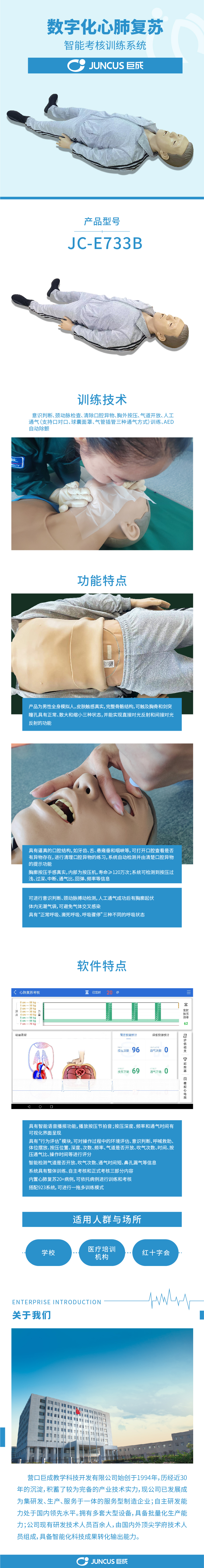 具有常見的心肺復蘇及AED使用的典型案例,可進行訓練和考核操作,具有意識判斷、頸動脈檢查、清除口腔異物、胸外按壓、開放氣道、人工通氣、AED電除顫等功能,并且帶有心肺復蘇反饋裝置,實時記錄使用者的操作信息,幫助用戶更好的學習和訓練心肺復蘇的實踐技能。