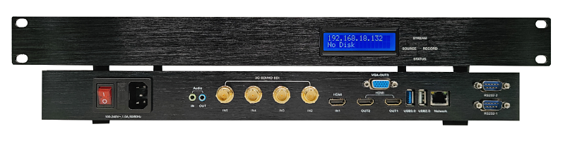 產品詳細介紹KLF05SDI-SV2是高度集成顯示,編碼,存儲的一體化設備,支持雙向音視頻4K互動直播, 支持5路物理輸入(1*HDMI +4*SDI) +導播共6路實時錄制,直播,點播,直播推流等功能 支待本地/遠程導播。支持VGA+2*HDMI3屏異顯,一個屏本地操控導播及預覽,一個屏輸出導播全屏/畫中畫/回放 海思SOC芯片純硬件芯片開發,采用嵌入式Linux系統,穩定不會中毒及死機 6機位輸入1*HDMl(4KP30)+4*3GSDI+l*網絡流及U盤導出,錄制支持掉電保護 內置3.5寸SATA盤位支持存儲,回放功能,支持本地3屏異顯輸出,本地操控/導播全屏,支持HDMI 4KP60幀輸出 支持H265/H264解碼,內置1.2T神經網絡推理引擎支持人臉識別目標檢測跟蹤