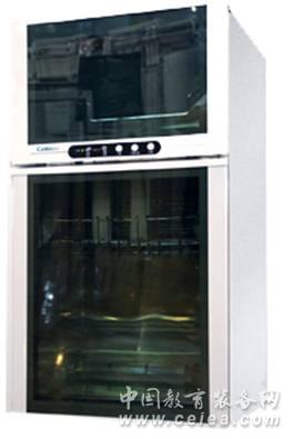 上、下門茶色大玻璃造型,上層臭氧保潔,適用于各種食具的保潔與存放,下層高溫消毒,適用于耐高溫食具的保潔與存放。