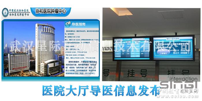 武漢星際互動信息技術有限公司已經成功實施了廣水人民醫院、香港大學深圳醫院,武漢市協和醫院,武漢市同濟醫院,宜昌市第二人民醫院、武漢市佛祖嶺社區醫院、銀川市第一人民醫院、鄭州圣瑪婦產醫院、寧夏第一人民醫院、瑞安紅十字醫院、蘇州大學附一醫院、湖北咸寧中心醫院、寧波健民肛腸醫院、 聊城市第二人民醫院、秦皇島市第一醫院、河南鄭州市第一人民醫院、金壇人民醫院數字標牌系統項目。
