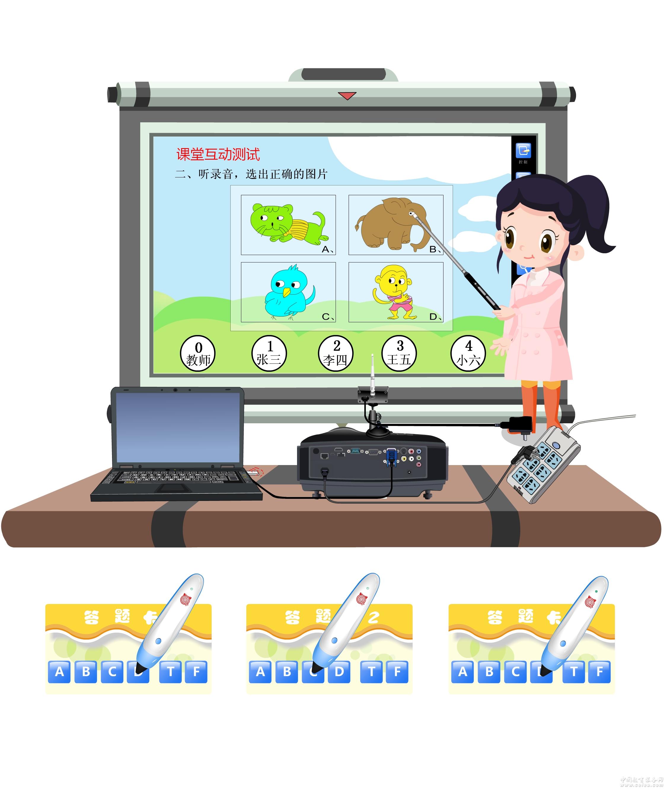 產品特色: “高性價比” 價格比傳統電子白板低,投影面積比傳統白板大,耗電比傳統白板少,維護更容易。 “簡易” 安裝及使用非常簡易,不改變教師使用教鞭教學的習慣。 “便攜” 體積小巧,摒棄傳統大白板的笨重,方便運輸及攜帶。 “耐用” 所有設備采用光電模式,不存在傳統電子白板磨損及靈敏度越來越差的問題。 “多平臺” 一套內容,可以滿足點讀書、平板電腦、互動教學系統等多平臺,并且相互間可以互動。 “高安全性” 無線接收器也是加密鎖,每項內容都可以得到硬件級的加密,確保安全。就是傳統的PPT文件都可以得到有效保護。