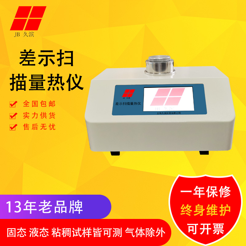 產(chǎn)品詳細介紹品牌:久濱 型號:JB-DSC-500B 名稱:差示掃描量熱儀 一、產(chǎn)品概述: DSC測量的是與材料內部熱轉變相關的溫度、熱流的關系,應用范圍非常廣,特別是材料的研發(fā)、性能檢測與質量控制。材料的特性:如玻璃化轉變溫度。冷結晶、相轉變、熔融、結晶、熱穩(wěn)定性、固化/交聯(lián)、氧化誘導期等,都是DSC的研發(fā)領域。 二、儀器符合國家標準: GB/T 19466.2 – 2004 / ISO 11357-2: 1999第2部分:玻璃化轉變溫度的測定; GB/T 19466.3 – 2004 / ISO 11357-3: 1999第3部分:熔融和結晶溫度及熱焓的測定; GB /T 19466.6- 2009/ISO 11357-3 :1999 第6部分氧化誘導期 氧化誘導時間(等溫OIT)和氧化誘導溫度(動要態(tài)OIT)的測定。 三、技術參數(shù): 1、DSC量程:0~±500mW 2、溫度范圍:室溫~500℃ 3、升溫速率:0.1~80℃/min 4、溫度分辨率:0.01℃ 5、溫度精度:±0.1℃ 6、溫度重復性:±0.1℃ 7、DSC精度:±2% 8、DSC分辨率:0.001mW 9、DSC解析度:0.001mW 10、控溫方式:升溫、恒溫、降溫、循環(huán)控溫(全程序自動控制) 11、曲線掃描:升溫掃描 12、氣氛控制:氣體質量流量計自動切換兩路氣體 13、顯示方式:24bit色,7寸LED觸摸屏顯示 14、數(shù)據(jù)接口:USB標準接口,配套相應操作軟件 15、參數(shù)標準:配有標準校準物,帶一鍵校準功能,用戶可自行對溫度進行校準 16、工作電源:AC220V 50Hz/60Hz 17、全封閉支架結構設計,防止物品掉入到爐體中、污染爐體,減少維修率 |