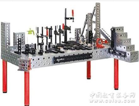 什么是三維柔性組合焊接工裝 這是一套預先制作好了的標準化、系統化、通用化的模塊,所有模塊的連接、固定和壓緊都是以孔定位加上鎖銷的方式出現,模塊與模塊之間可以根據工件的尺寸變化而調整,整個一套夾具的組合可以實現三維空間的結合,這套夾具的特點:主要用在焊接產品上最為理想,所以叫三維柔性組合焊接工裝夾具。這套工裝分為兩大類:一是D28系列,即孔徑¢28mm,表面分布著100x100mm的網格線;二是D16系列,即孔徑¢16mm,表面分布著50x50mm的網格線。 .產品的特點 1、 經濟性 復雜昂貴的傳統夾具已成為歷史。你可以免去高成本的大量專用工裝的儲備,因為3D系統不需要變更而適合各種工作場合。如此精妙的裝置操作簡便、使用安全。 2、 柔性化 3D焊接工作臺非常堅固,可承受非常高的載重量。它的五個面均加工有規則的孔,并刻有網線。(孔沒有斜度和T型槽)。在3D焊接工作臺上,任何工件都可以用定位夾緊銷進行各種各樣的定位和夾緊。幾個3D工作臺可以在任何五個面上直接連接在一起。這個模塊化系統在安裝、調整和夾緊工件中完美的體現了它通用的功能。 三維柔性組合工裝是一款針對焊接部件,鈑金件和結構件的裝夾,定位而特意研發的,目的就是為了解決工廠在生產產品中遇到的如:粘焊渣,焊接變形,尺寸偏差和垂直度不好等一系列問題。它由多孔平臺和一系列應用標準配件組成,可以實現任意的組合,完成工件的90%的裝夾和定位,被業界譽為“萬能夾具”稱號 |