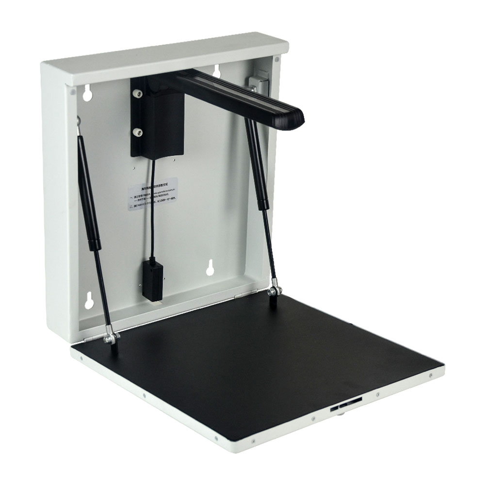 2、 壁掛式機箱一體設計(壁掛式箱體,為講臺省出位置,為教師留出更大教學空間,機箱配置機箱鎖,同時實現防盜,防損壞;頂部內置6顆LED燈進行補光。