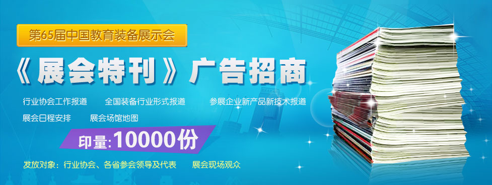 教育裝備網(wǎng)做為中國教育裝備行業(yè)協(xié)會的官網(wǎng),是國內(nèi)教育裝備領域最專業(yè)、最權威的網(wǎng)絡傳媒。2013年11月網(wǎng)站工作人員將深入第65屆中國教育裝備展示會現(xiàn)場,全程進行現(xiàn)場采訪報道。 同時為更好地服務于展會,網(wǎng)站圍繞“提供展會活動指引,突出參展企業(yè)亮點”的宗旨,精心籌劃制作了《第65屆中國教育裝備展示會展會特刊》,于展會期間現(xiàn)場發(fā)放。