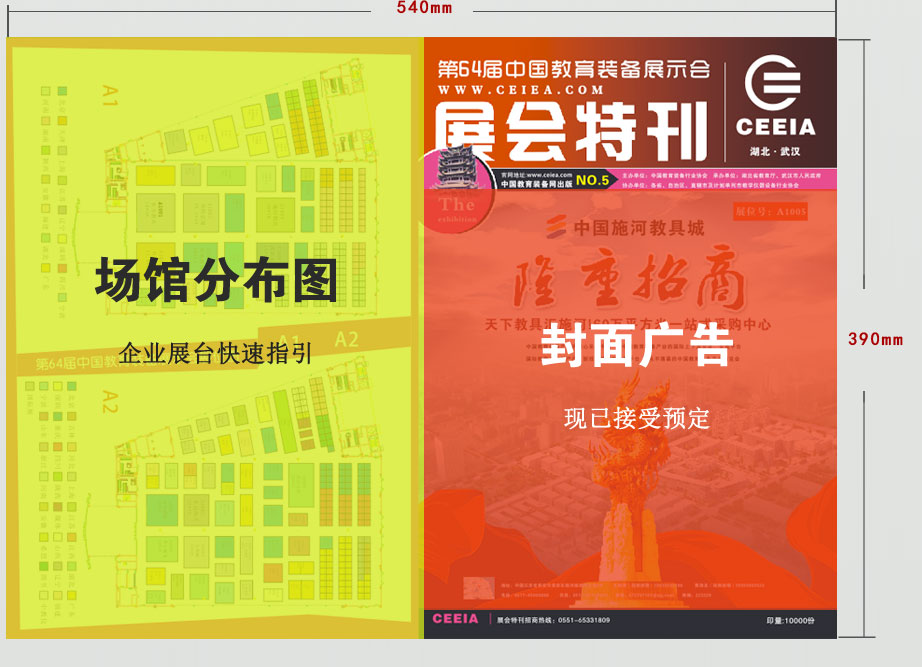 《第65屆中國教育裝備展示會展會特刊》內(nèi)容有,中國教育裝備行業(yè)協(xié)會工作報告、全國裝備行業(yè)形式報道、參展企業(yè)新產(chǎn)品新技術專題報道等;特刊內(nèi)印有詳細的展會日程安排和展會場館地圖,給參會者提供展會活動全程指引。