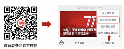 關注“中國教育裝備網(wǎng)”官方微信,從菜單欄找到“線上中國教裝展”,即可使用。