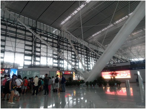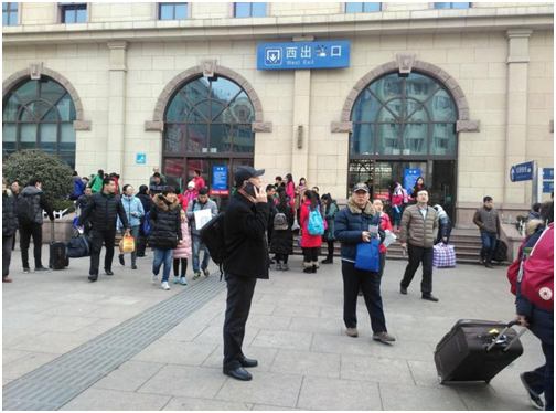 志愿者在青島西站到達出口舉牌接站,接到來賓后,步行前往停車場,抵達交通車乘車點(東西出站口均有志愿者引導至循環交通車)。