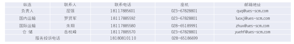 根據與組委會的協定, 成都縱連展會物流有限公司重慶分公司負責本屆展會的物流運輸工作。為展會提供布撤展車輛交通管控、倉儲、裝卸、展品的運輸以及境外展品運輸等服務。 為使您的參展物品能安全、順利、及時的運抵參展地—— 重慶國際博覽中心,請您認真閱讀本《展品物流指南》,若有不明之處或其他特別要求,敬請按下列方式聯系: