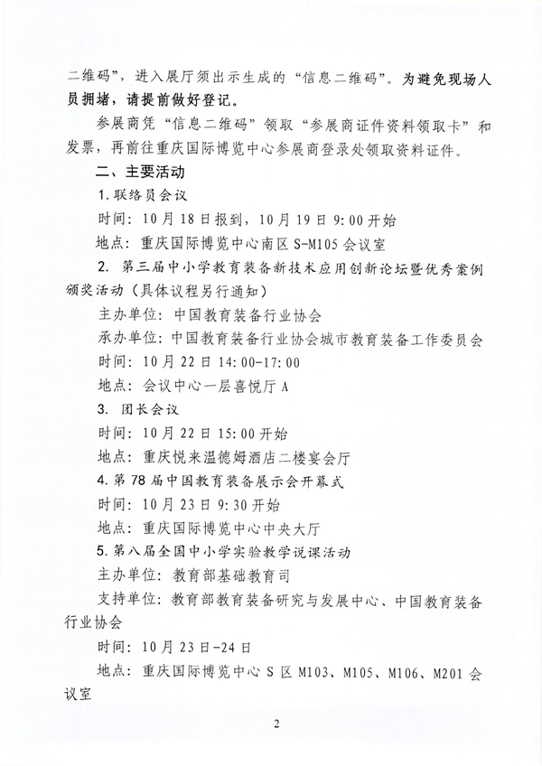 1.10月21日-22日 10:00-22:00組委會安排免費接站巴士,具體安排及集合地點關注“教育裝備網公眾號二維碼”獲取相關信息。