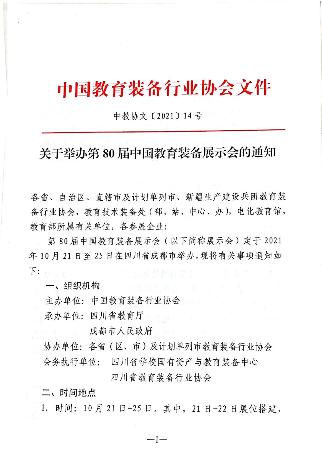 第80屆中國教育裝備展示會定于2021年10月21日至25日在四川省成都市舉辦,現將中國教育裝備行業協會《關于舉辦第80屆中國教育裝備展示會的通知》(中教協文[2021]14號)轉發給你們,請按通知要求,認真做好參展和參觀準備工作。