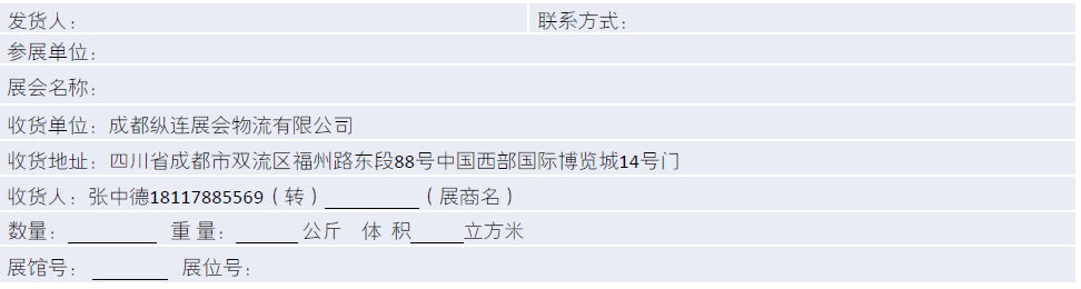 收 貨 人:張中德 18117885569(轉)(展商名)