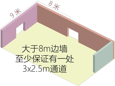 2.展臺(tái)設(shè)計(jì)大于8m的邊墻至少保證有一處3X2.5mH的通道,請(qǐng)參考下圖示例。