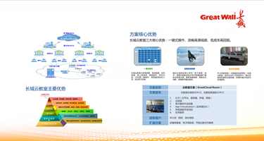 長城云教室解決方案是基于云計算虛擬化技術的全新多媒體教室解決方案,該方案由“服務器 + 云終端 + 交換機 + 長城云教室管理平臺”組成,是長城電腦憑借在硬件制造、云計算研發和教育領域的多年積累,結合底層虛擬化技術、傳輸協議、云計算管理平臺、高清視頻播放技術、智慧資源調度技術等各個方面特別定制開發的。它解決了虛擬技術下的高清視頻播放、高并發下的學生機啟動風暴、數據安全容錯等諸多難題,實現了高清視頻的流暢播放,零延遲、無拖影;強勁的云端性能,支持單機和集群部署,甚至上百臺學生機的部署,配以智慧資源調度技術,提供更加智能的硬件資源調配,大幅提高了硬件資源的利用率;該方案還具有全面兼容、輕松擴容的特點..詳細>>